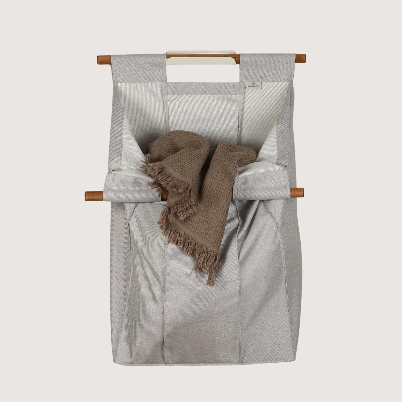 Portables hamper crafted from a durable fabric with beechwood handles so that it’s easy to haul dirty clothes off to the laundry room.