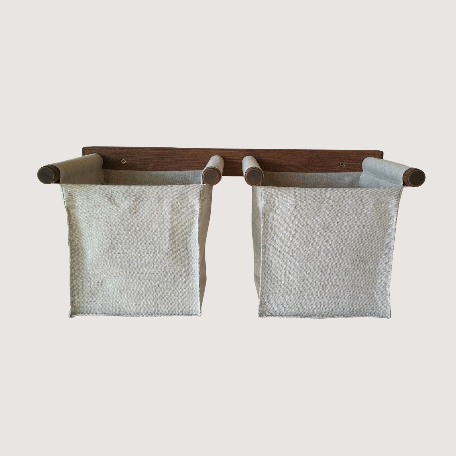 Baskets crafted from a durable fabric mounted on beech wood frame .